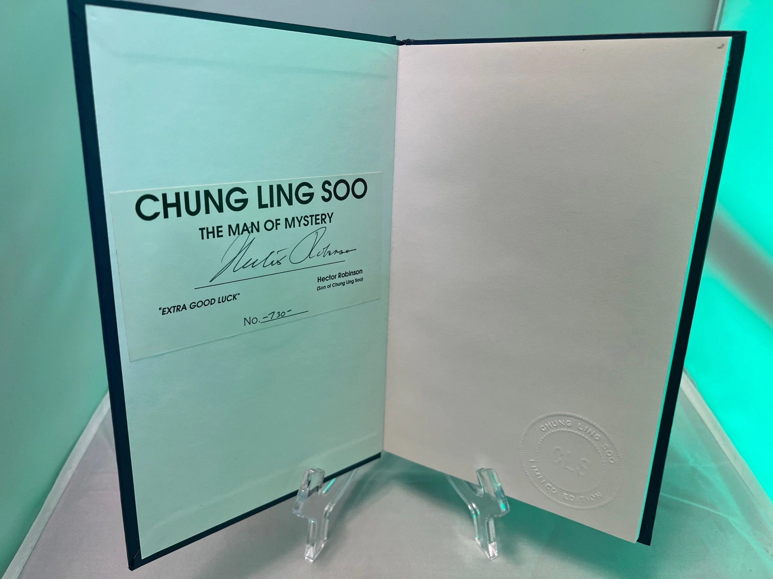 This numbered, limited edition, authored by Gary R. Frank, has been fully approved by Hector Robinson son of William E. Robinson. Each book has a bookplate signed by Hector Robinson. It is a short (52pages) but exhausting bibliography on Chung Ling Soo. This is one of the books in the bibliography of the new Jim Steinmeyer’s book.