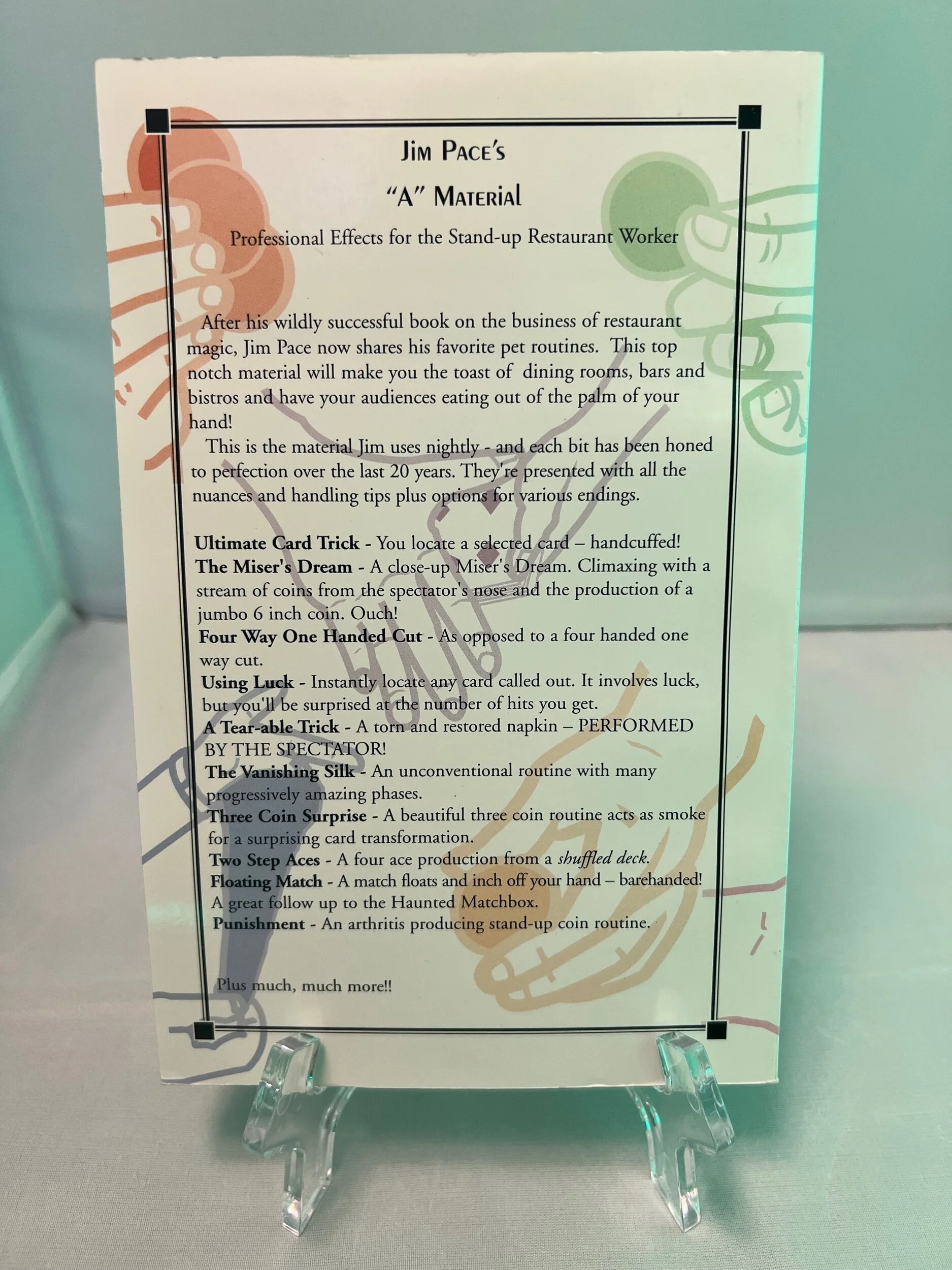 After his wildly successful book on the business of restaurant magic, Jim Pace now shares his favorite pet routines. This top notch material will make you the toast of dining rooms, bars, and bistros everywhere.